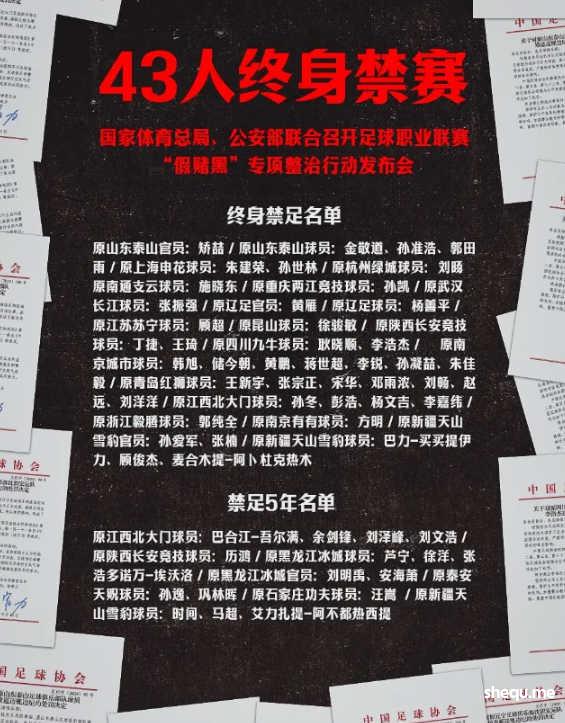 中国足协近期公布了第一批“禁足”60人名单,金敬道、郭田雨、顾超等43人为终身禁足,汪嵩、徐洋等17人被禁足5年。